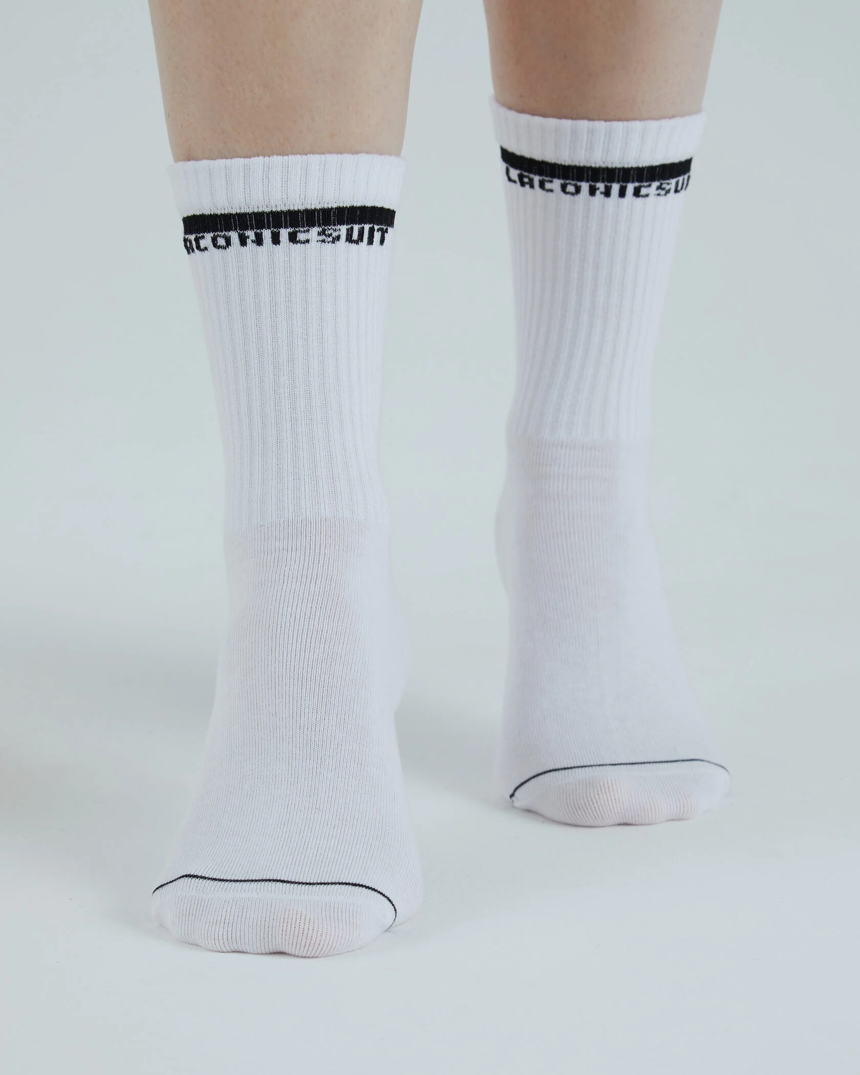 Cotton crew socks with a high rib that holds shape. Side text reads "Simply the Best."