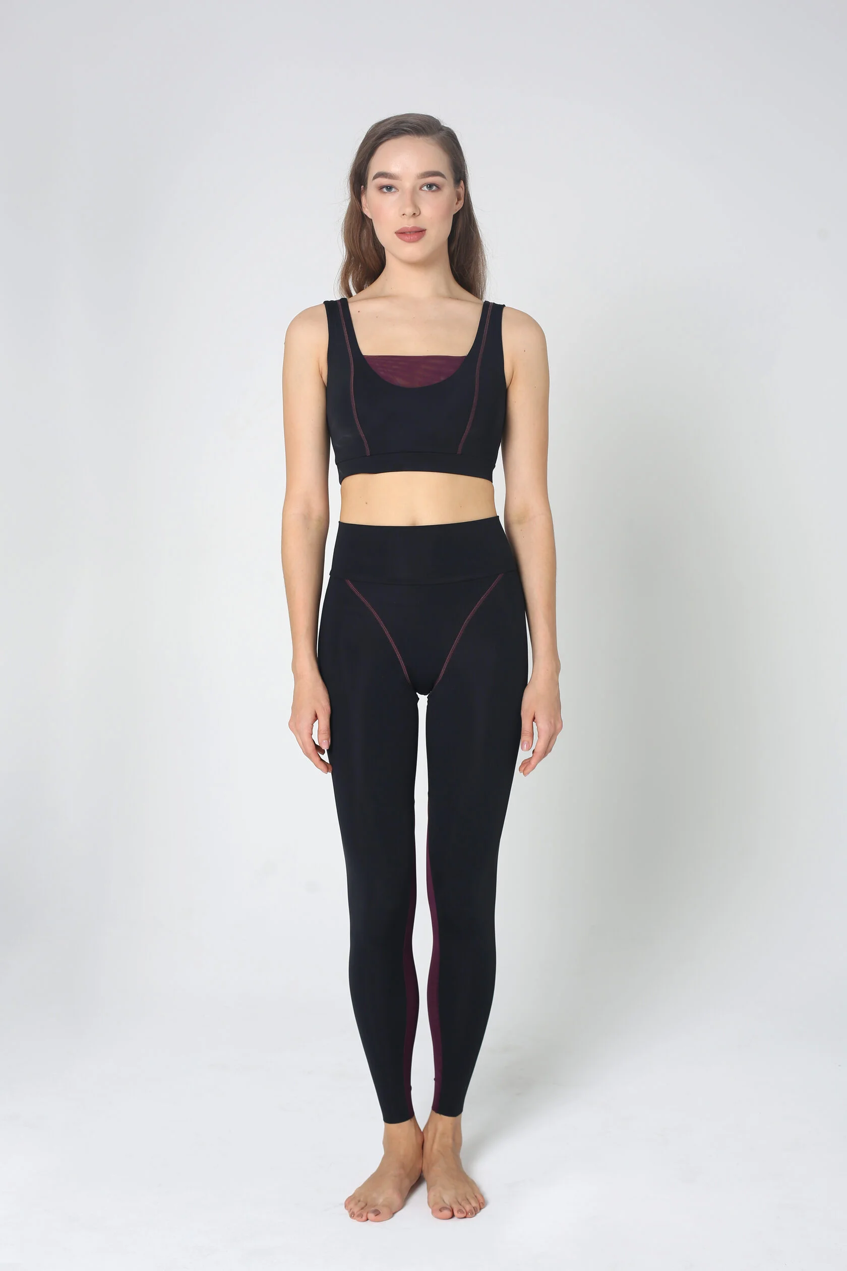 High-rise leggings with light compression and contour stitching that mimics lingerie lines. Dense, breathable matte biflex for a close, comfortable fit during any workout.