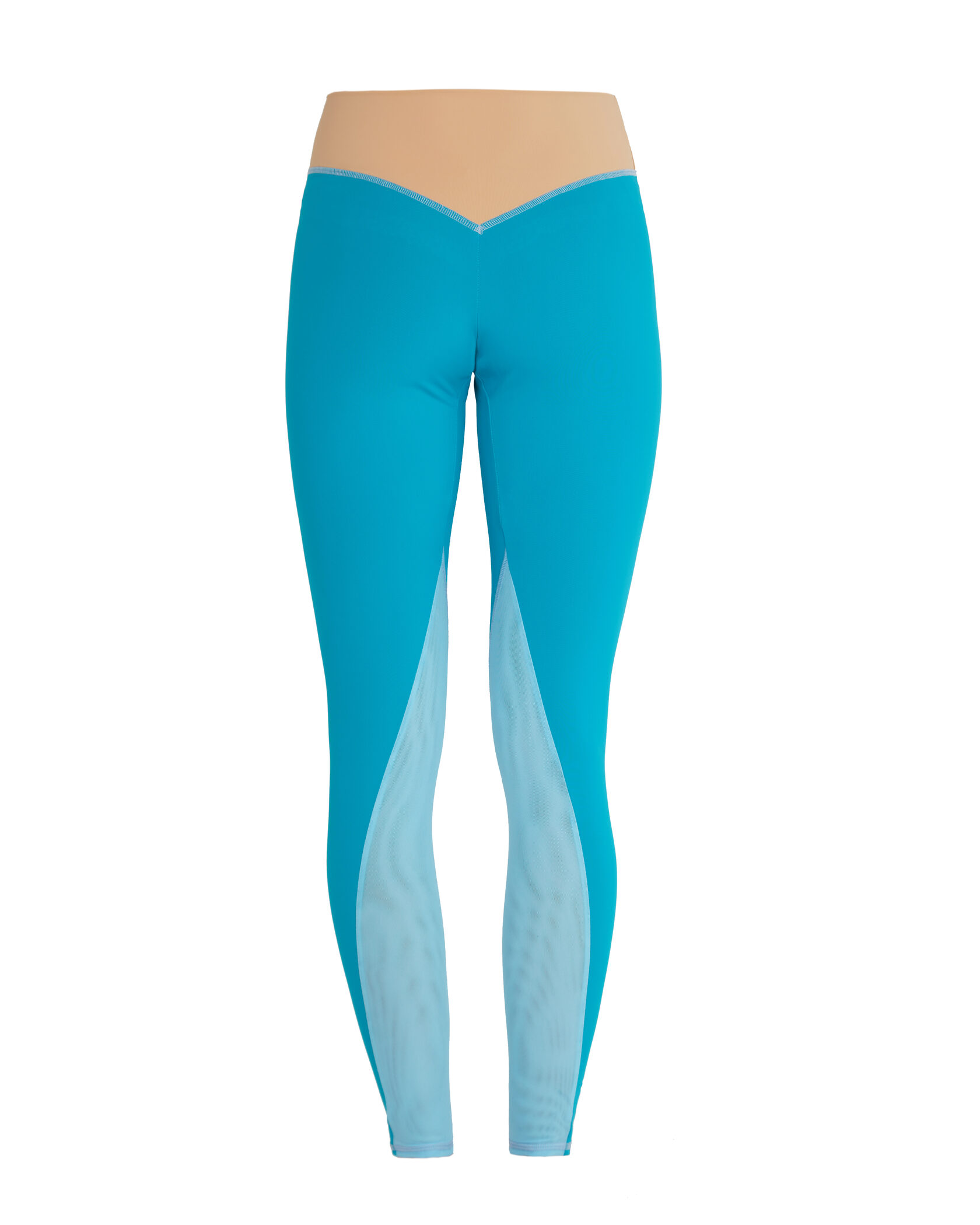 Bold high-waist design with an extra biflex layer through the abdomen for smoothing and support. Double mesh inserts at the calf finish the look.