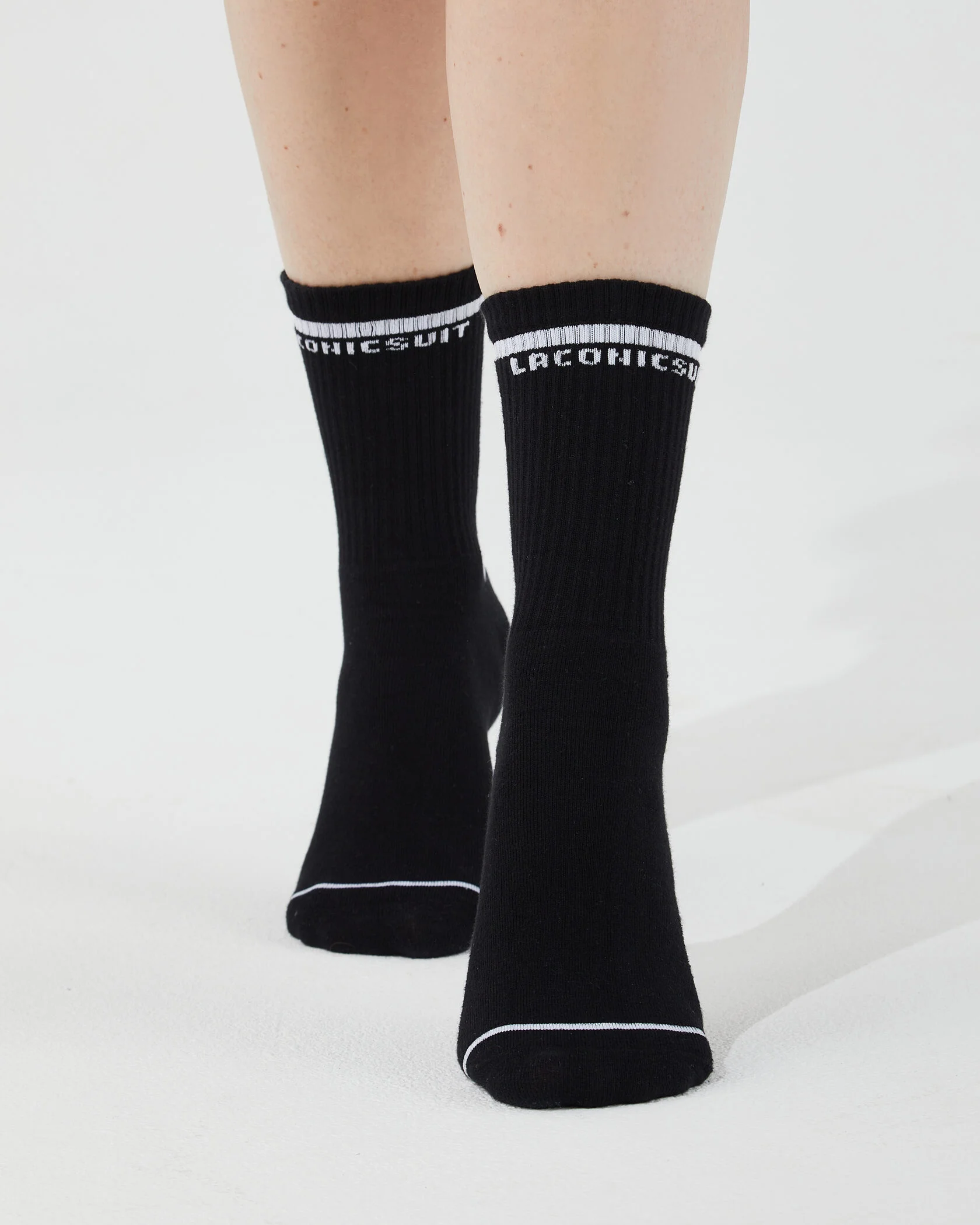 Cotton crew socks with a high rib and bold side text: "Who Run the World? Girls."